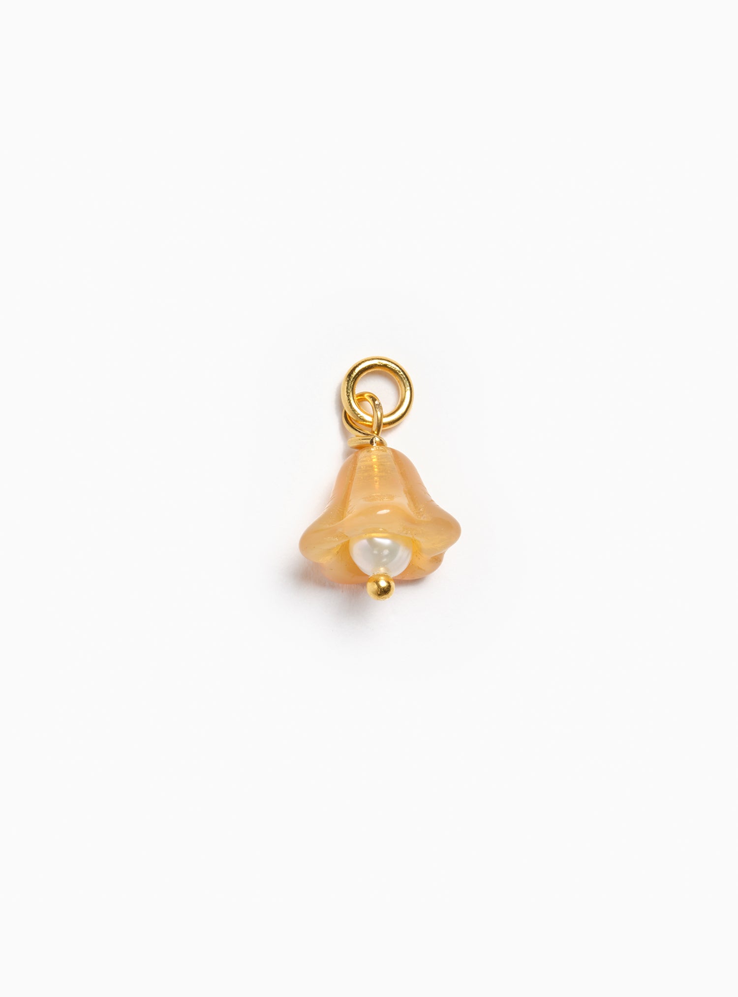Delicate and subtle, this charm features a pale, translucent pink bellflower crafted from vintage German glass. Hidden beneath the bell, a petite pearl adds a hint of secret beauty.