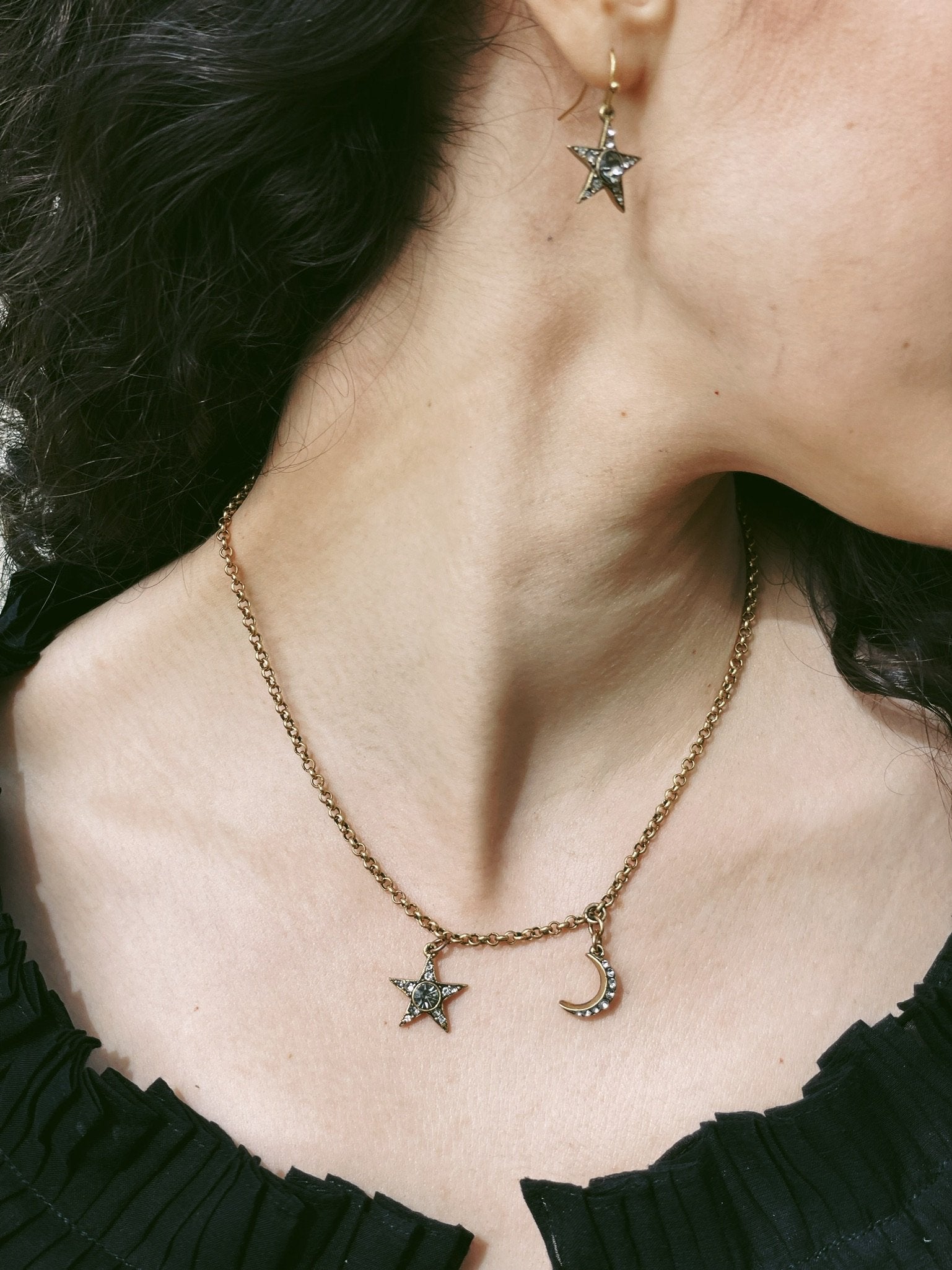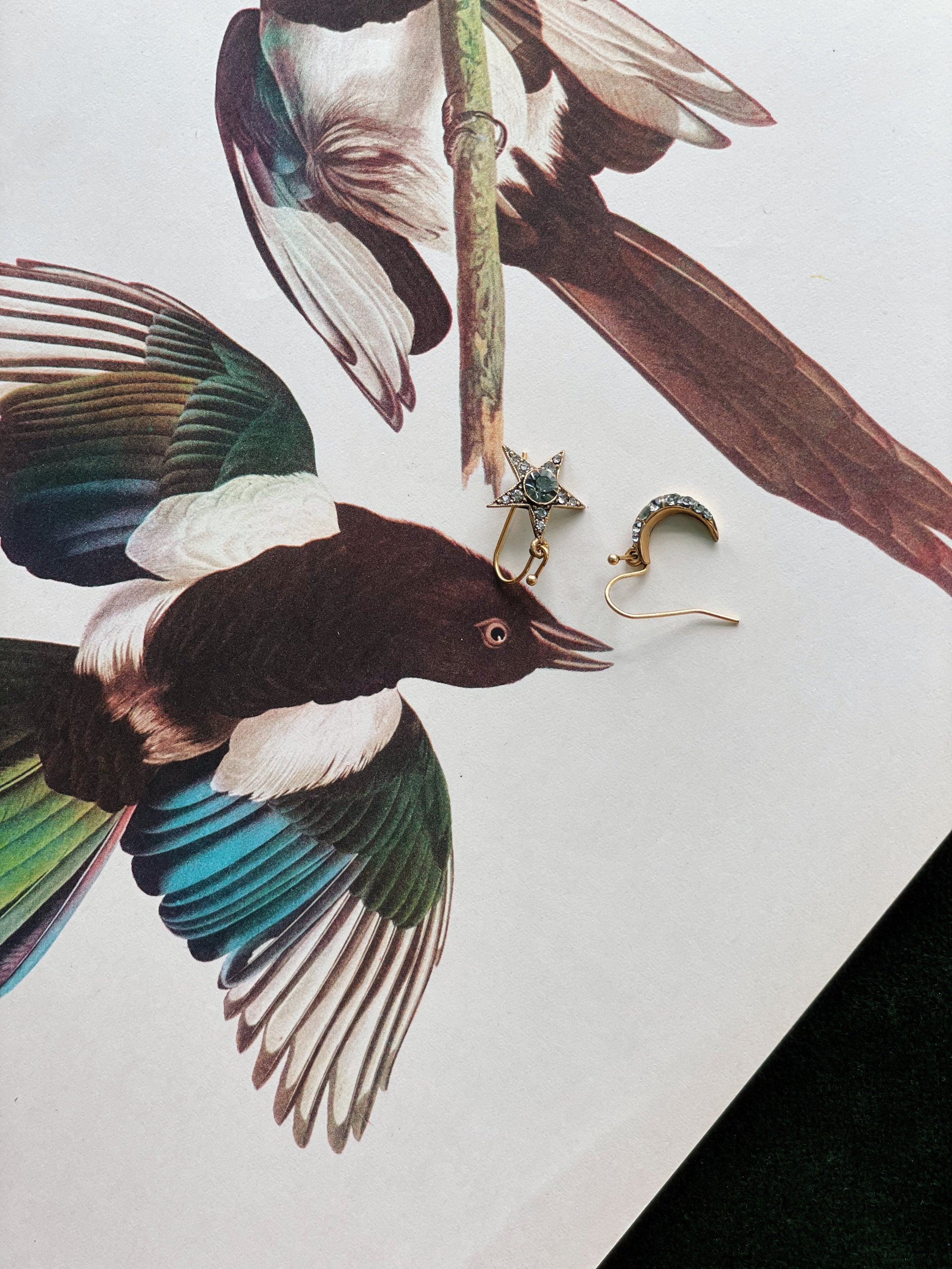 One might not suspect Napoleon of being enraptured by the stars, those timeless symbols of the divine feminine and guiding light, yet his belief in their counsel was profound, his trust unreserved. This dreamy, mismatched pair of crescent moon and star earrings reminds us to seek our destiny, holding faith in their light.