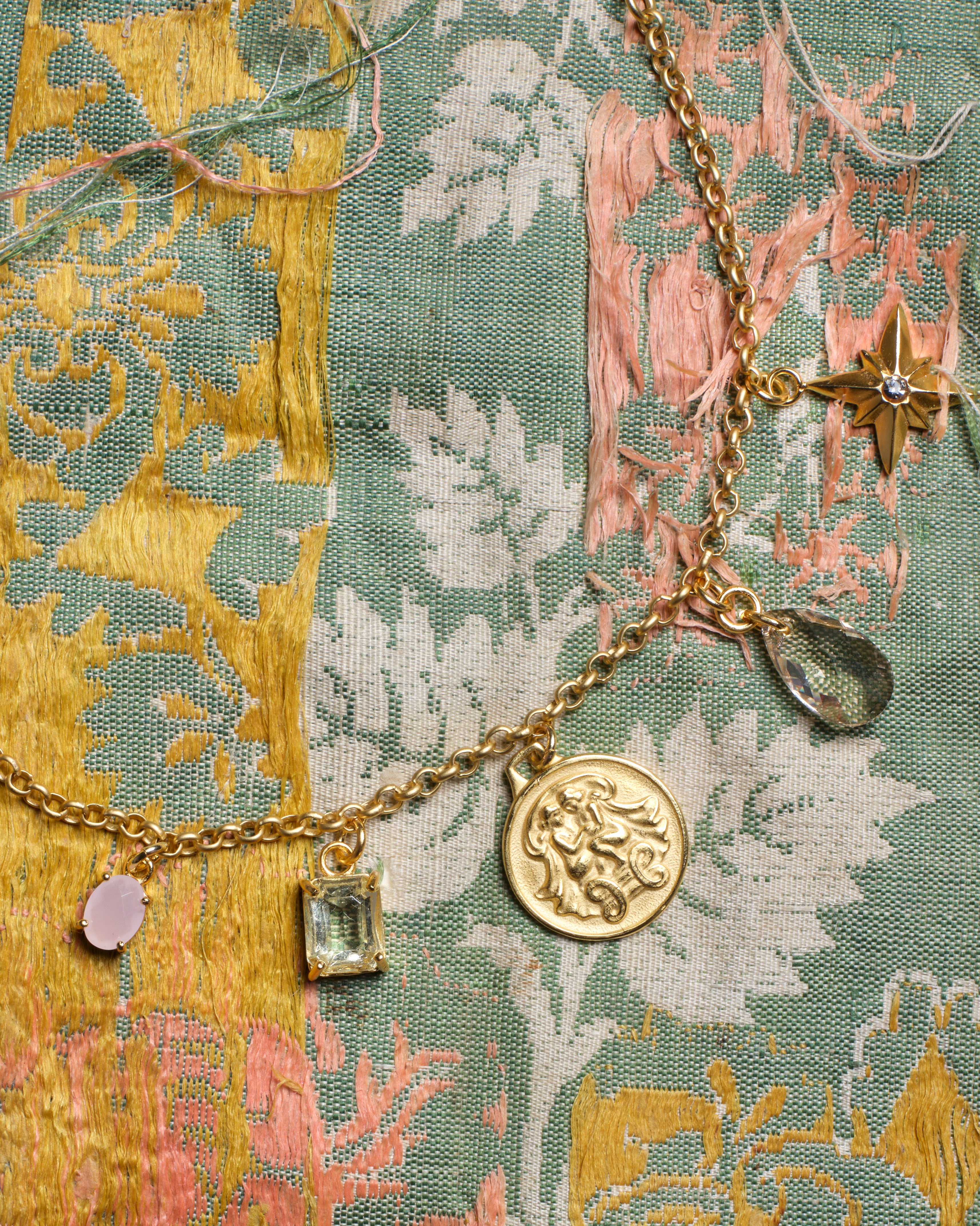 This bracelet brings the Gemini spirit to life through a symphony of elements: a blush pink stone capturing the tender heart behind the sharp mind; a dawn yellow charm for new beginnings; a golden étoile star charm, a talisman of destiny; and a faceted lumière crystal that catches light like the thoughts that flicker through Gemini's ever-active mind. All are strung on a delicate 3mm golden rolo chain— designed to move with you wherever you go.