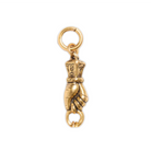 A knight grasps onto a ring, emptied of treasure but waiting for your personal touch. This charm is meant to hold others with a ring extending from a romantic, clasped golden hand. Attach tiny birthstone charms, stars, or whatever your heart may wish!