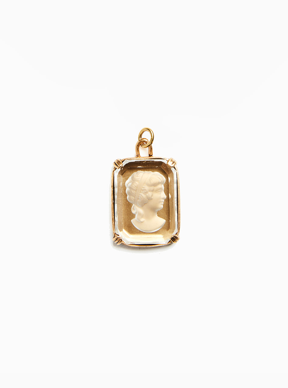 Crafted in the style of a twentieth century German piece, this cameo uses an Ancient Roman technique of setting the art beneath glass to achieve a dynamic effect, bringing each intricate detail to life.