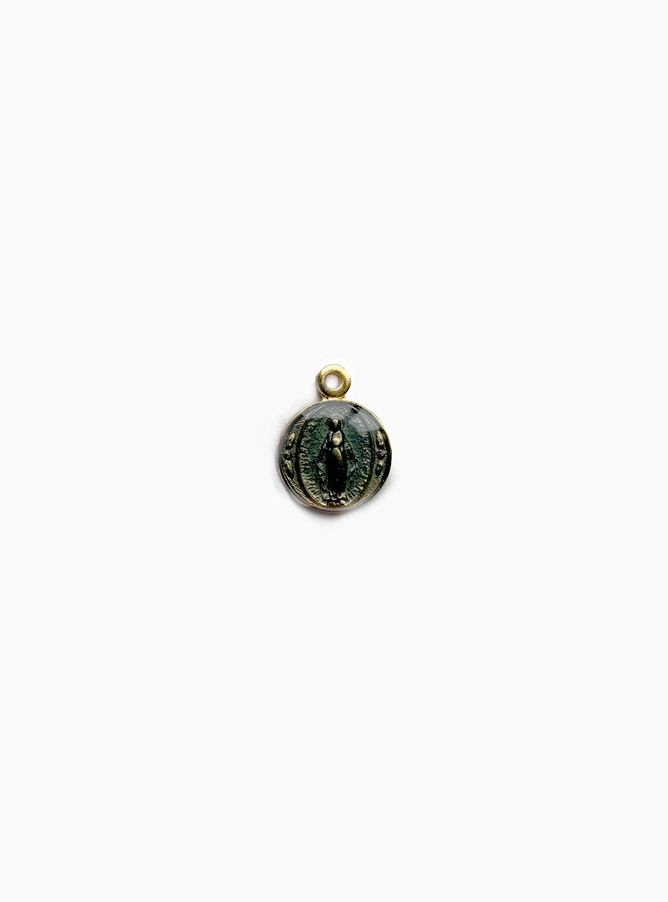 Long cherished as a symbol of grace and protection, the Miraculous Medal is reimagined here with a deep blue transparent enamel center. A color reminiscent of evening light settling over a sanctuary.