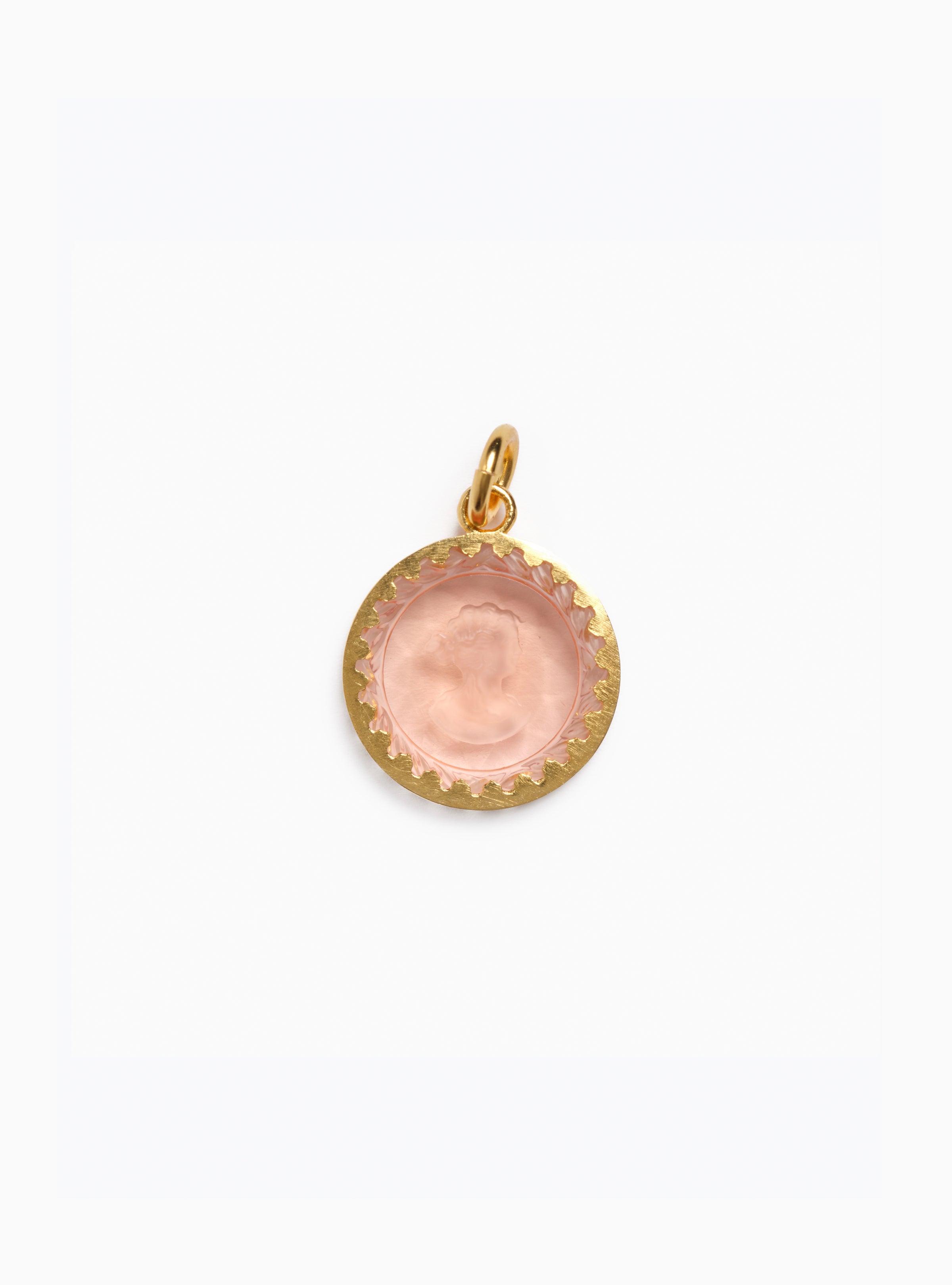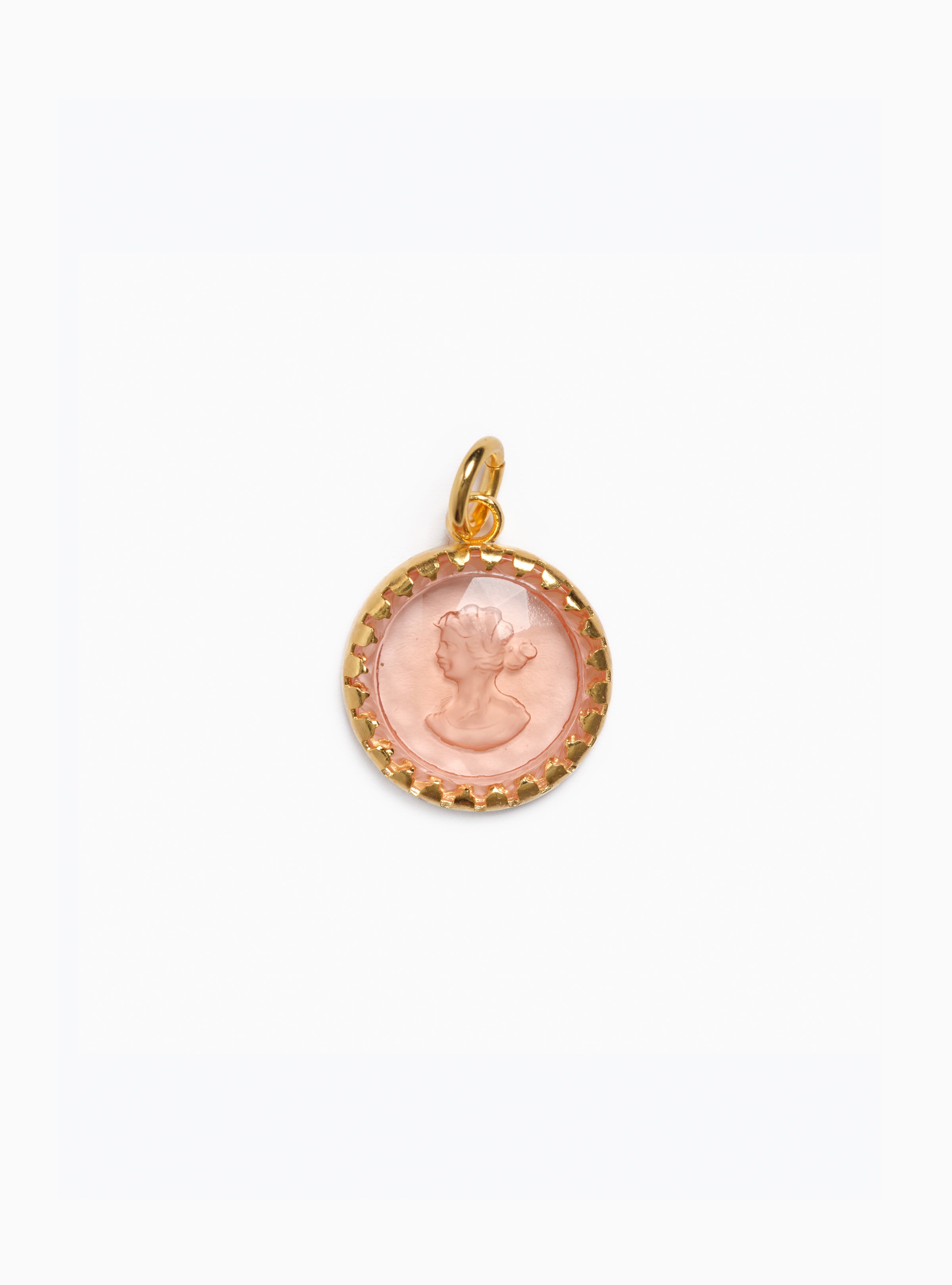 Colorful as stained glass and carved with the romantic visage of a woman lost in thought, these cameo charms are cut in delicate circles to mimic our intaglio crests. It's a classic design, and a lovely addition to any piece.