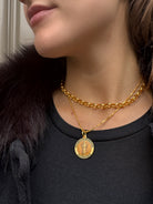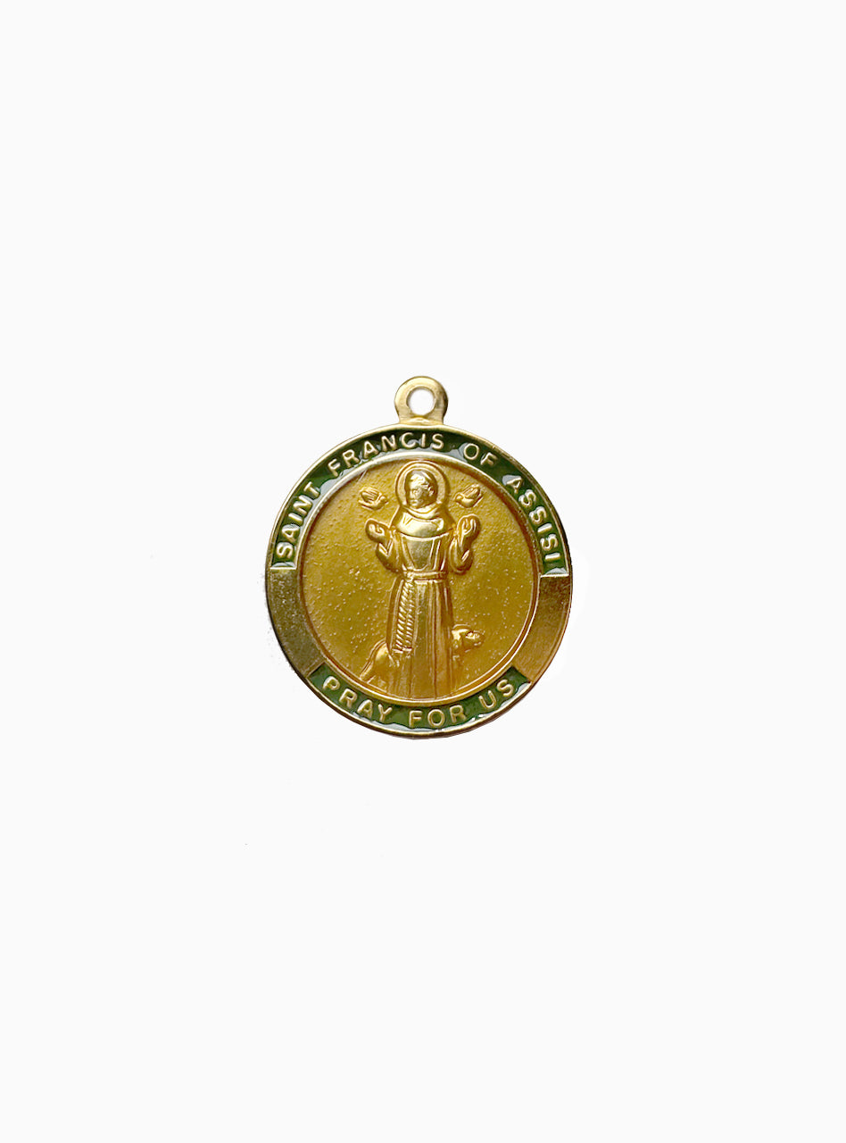 Drawn from an Italian devotional token, this charm shows Saint Francis in humble prayer, surrounded by small creatures at his hands and feet. As the patron saint of animals and peace, his presence conveys gentleness and stewardship.