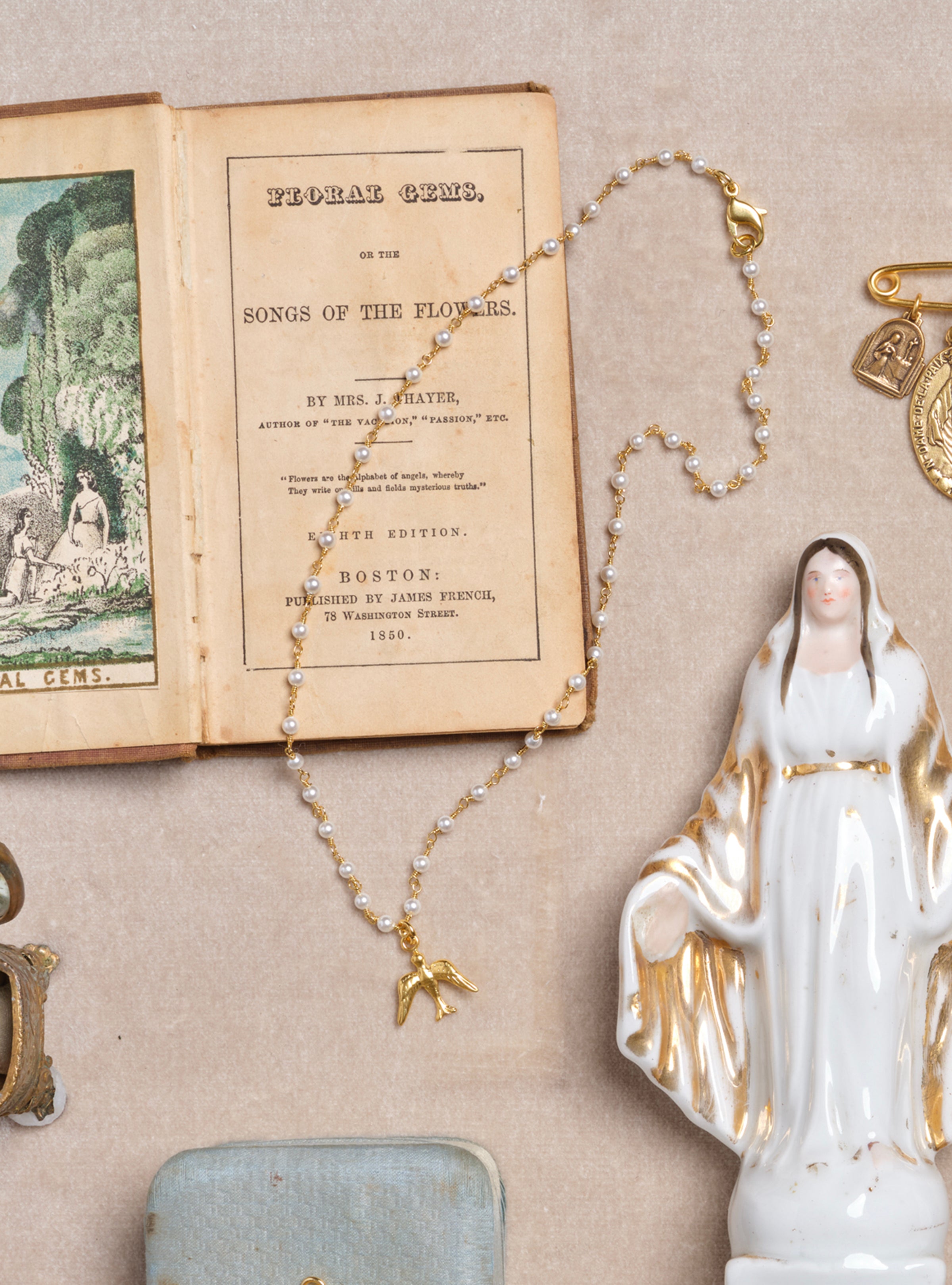Petite Songbird Charm with Pearl Beaded Necklace
