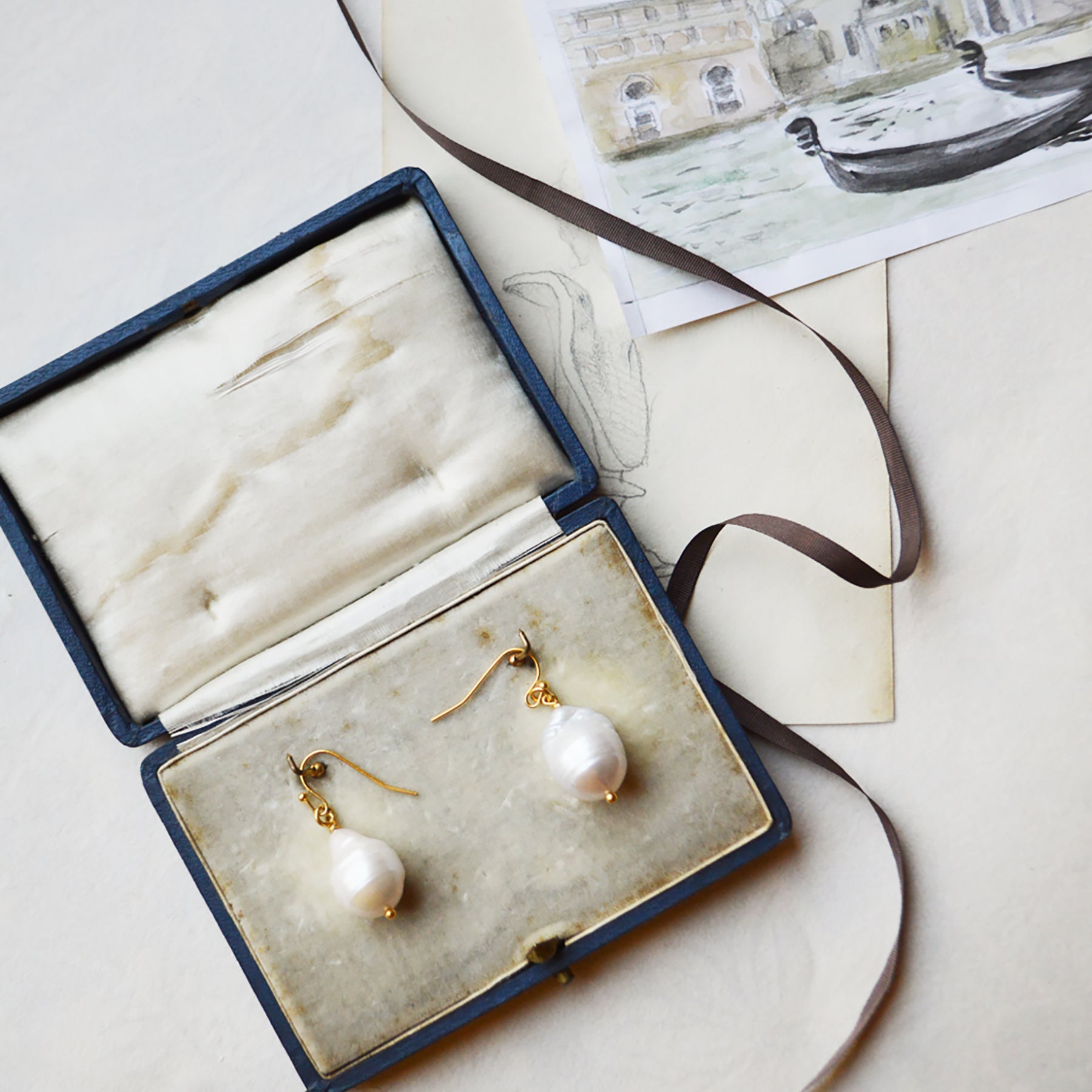 Inspired by the delicate pearl drop earrings seen in centuries-old oil paintings across Italy and France, these baroque-style pearls sway gently from French hooks—simple, romantic, and softly radiant. A nod to the past, worthy of a portrait.