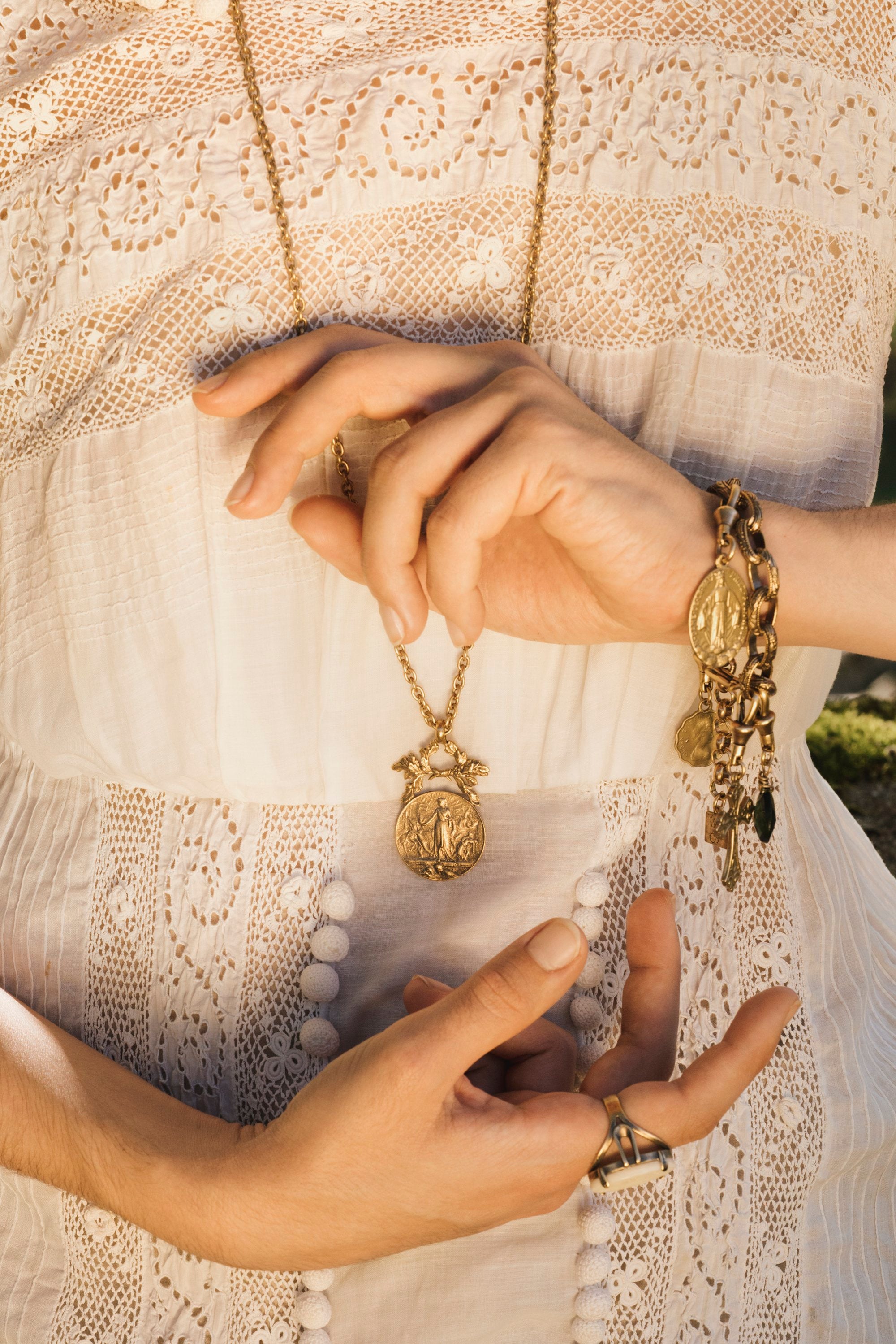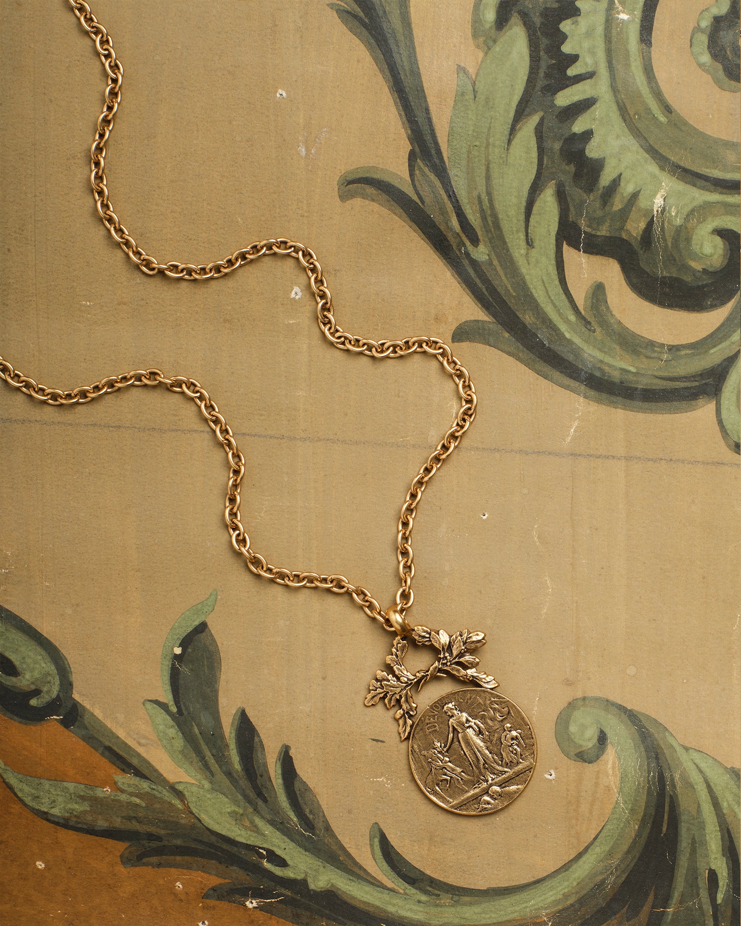 When we discovered a vintage French coin decorated with La Semeuse (“The Sower”), we knew at once it should be reimagined as a pendant on a long chain necklace. The image reminds us that if you take the time to plant a seed, good fortune will surely come.