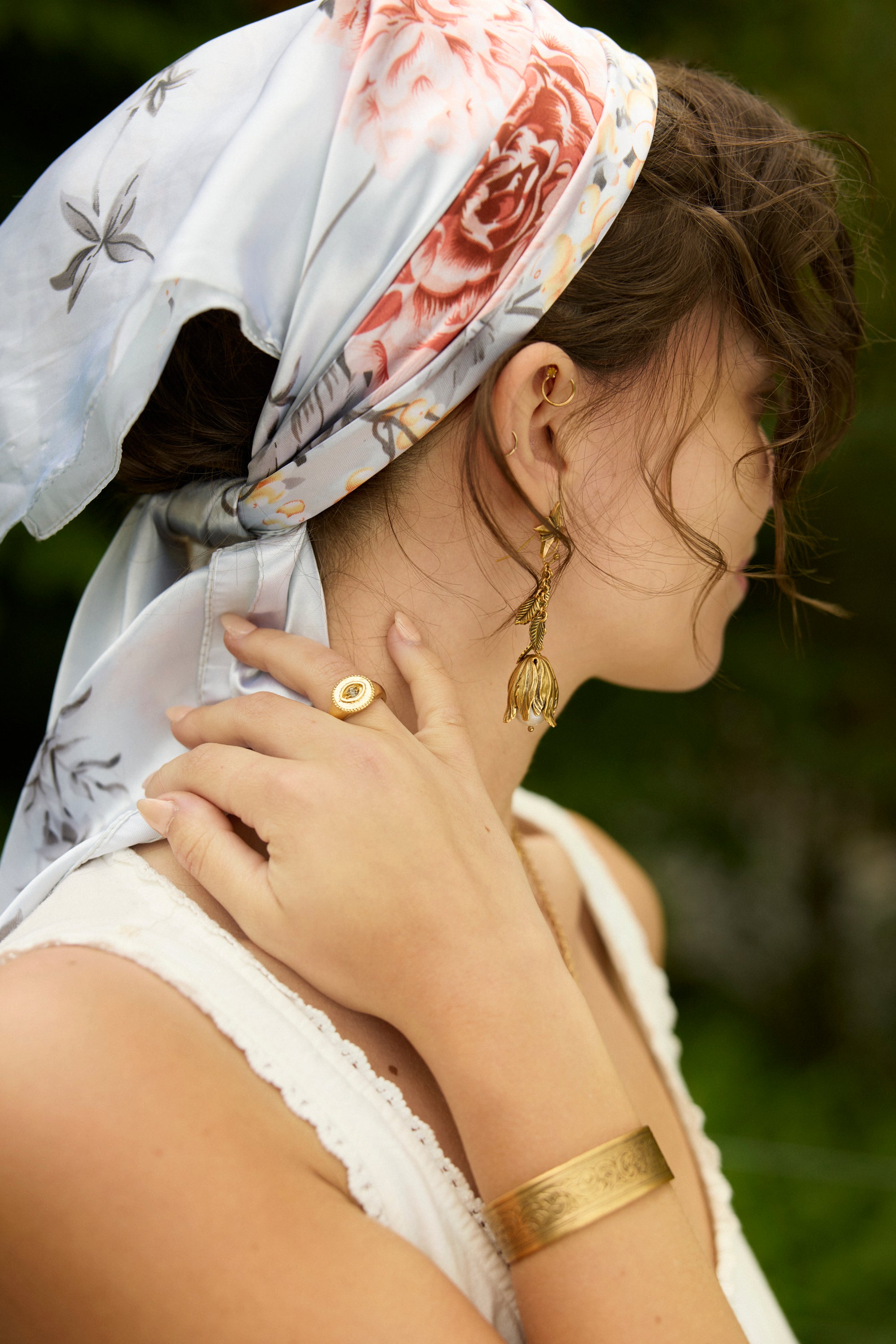 To adorn oneself with the evil eye is to claim protection against wicked energy, harmful thoughts, and jealous eyes—which makes this golden signet ring the perfect accessory for the watchful wearer.