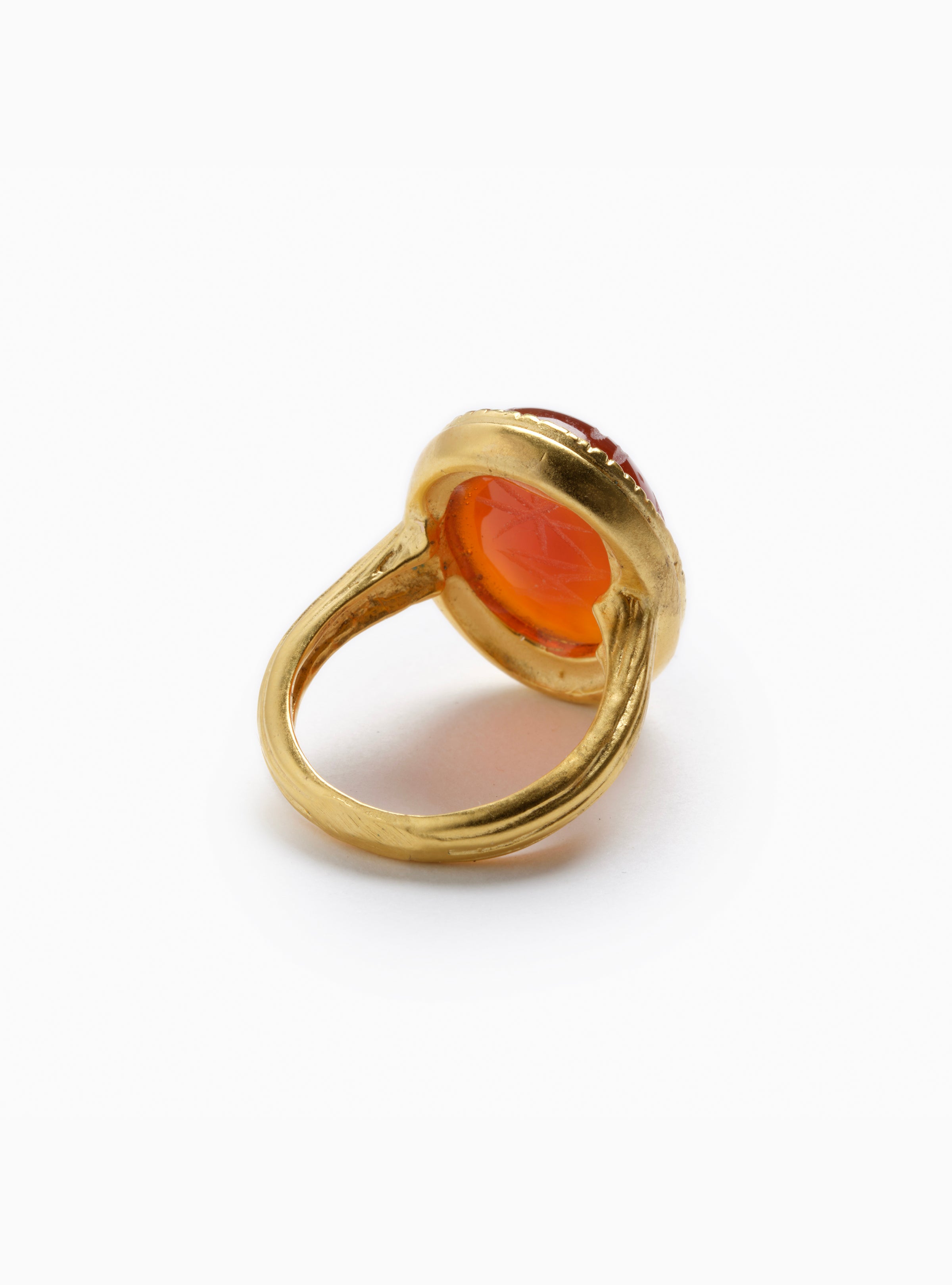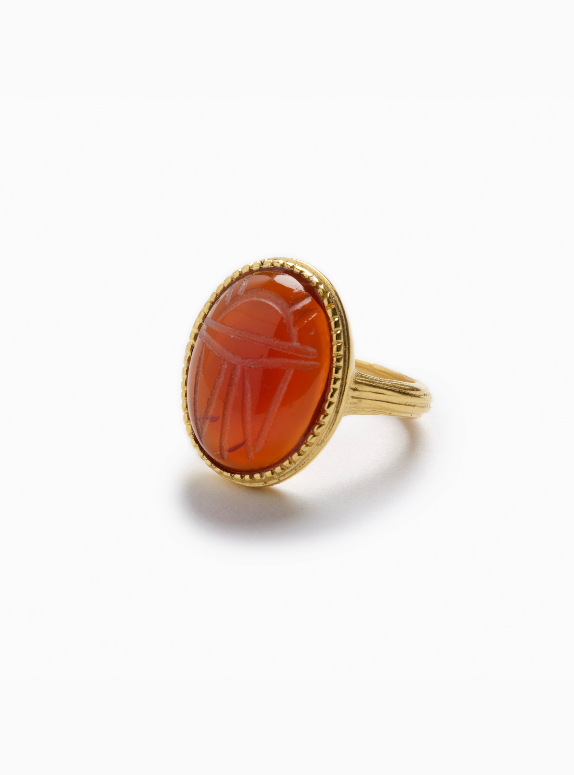 When worn on the third finger of the left hand, this scarab carved of genuine carnelian invites us to contemplate immortality, transformation and a promise of eternal life.