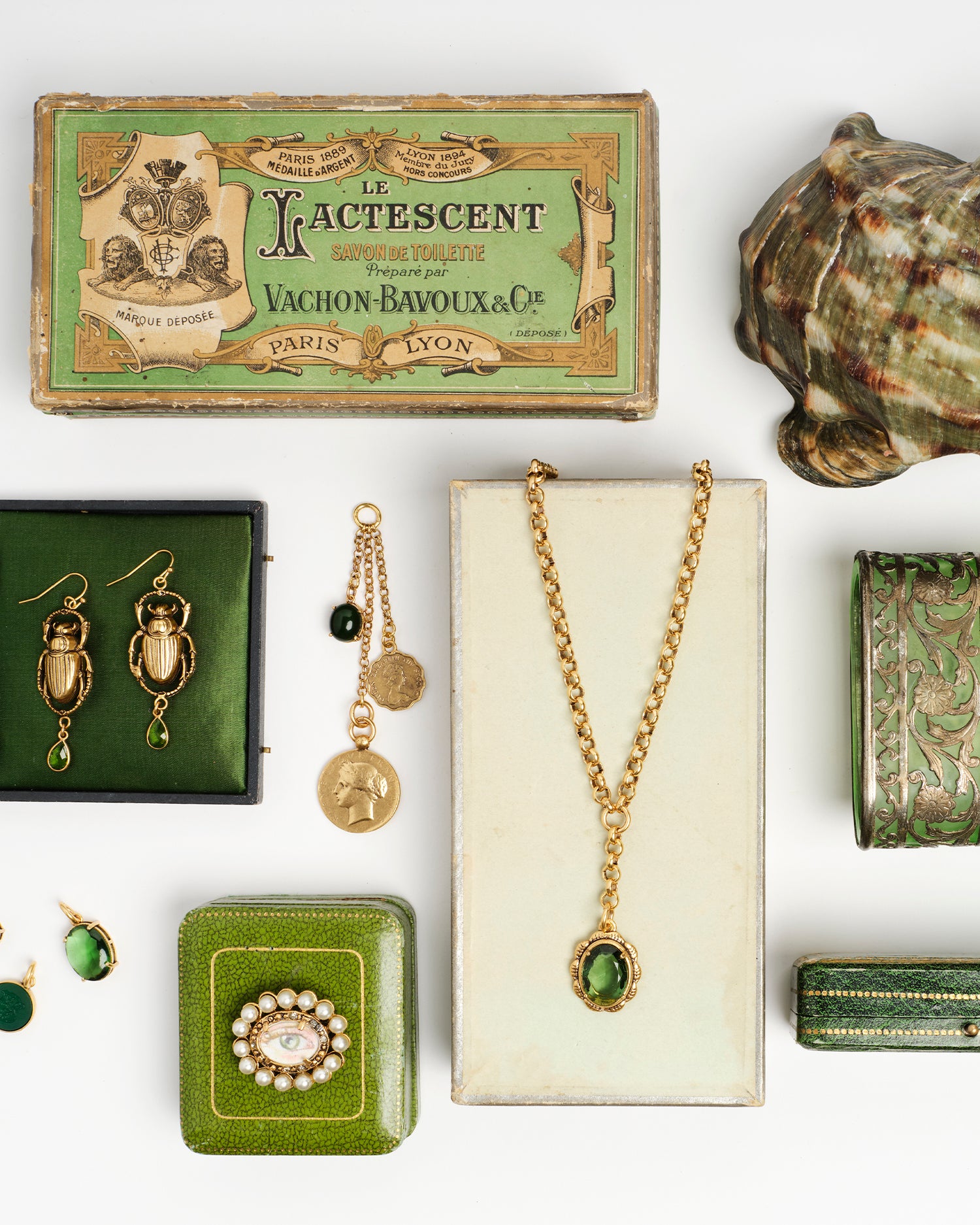 Intricately detailed and rich with color, our charms are cast from vintage prayer coins, cameos, intaglios, and glass stones sourced across Europe promise to bestow beauty, protection, and strength to whomever the wearer may be.