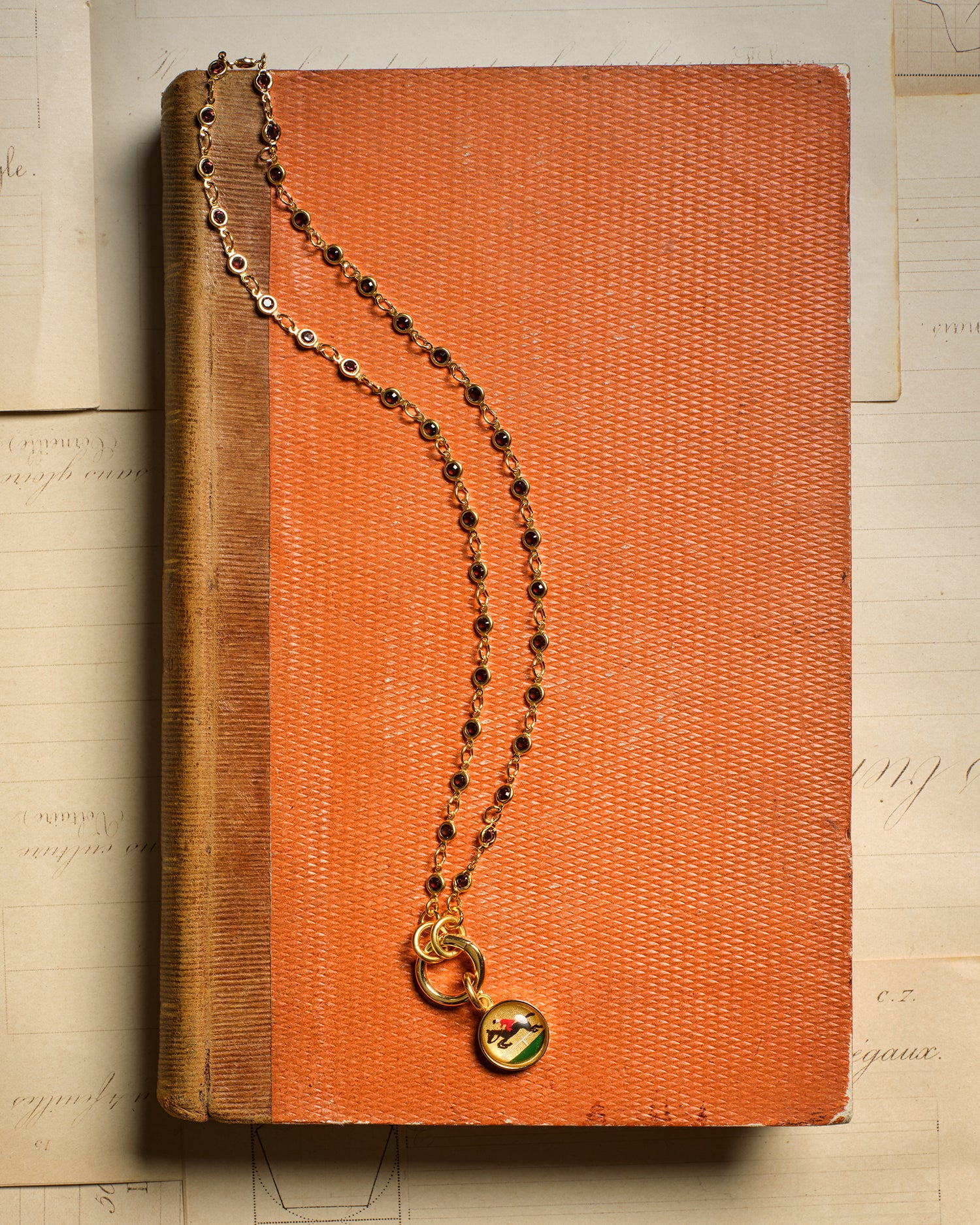 Textured and gold, this delicate bezeled chain necklace forms the perfect base for our equestrian charm.