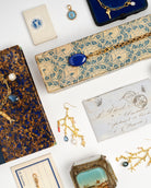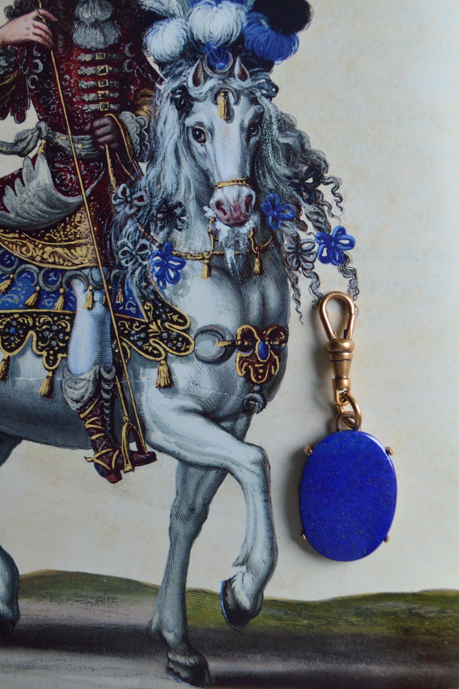 Materials: genuine lapis cabochon; flash plated antiqued gold over brass