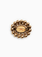 Flash plated antiqued gold over brass; glass pearls; hand-set glass frame.