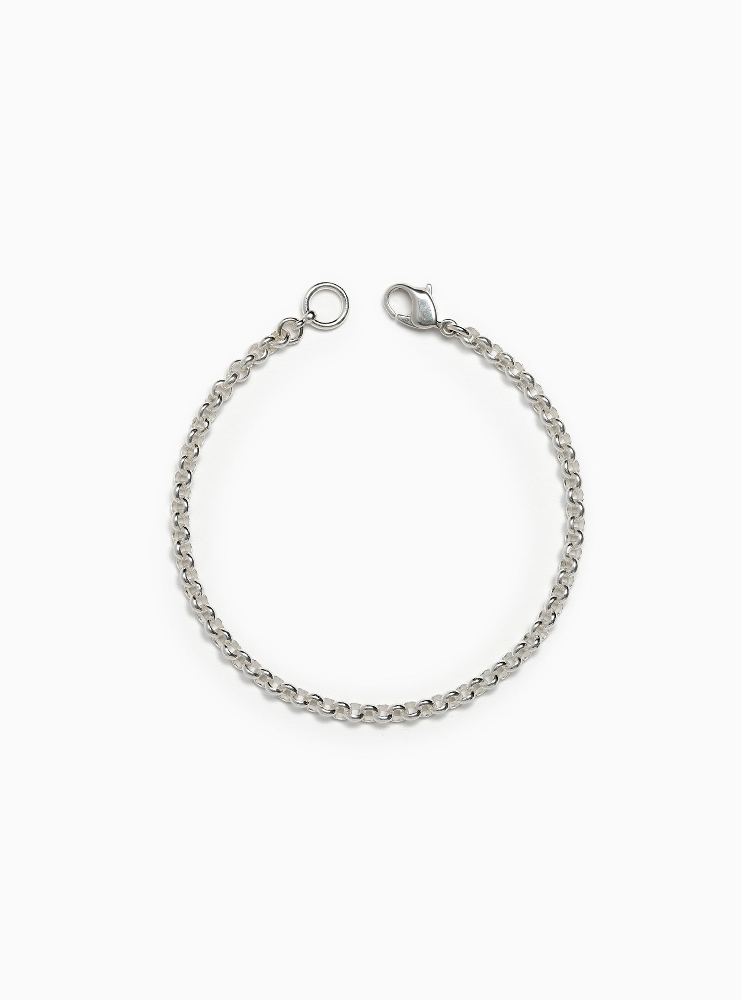A simple, rolo chain that serves as a solo bracelet, or a blank slate for our singular charms and pendants. It comes in a slender, sterling silver version.